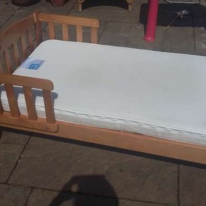 Mothercare Cot bed. Cant be dismantled so would need to be picked up in one piece. Small stain on mattress but cover can be removed to wash.