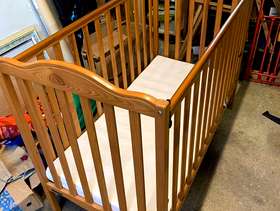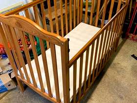 Mamas & Papas Sabrina cot - nice condition The cot is made from pine, has an adjustable base height and one side that drops. There is the original foam mattress with it but, ideally, you would want to replace that.