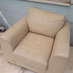 Cream leather armchair, not used and stored in conservatory, needs gone asap.