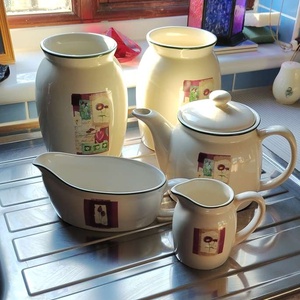 Two Vases, one Teapot, One gravy boat and a small milk jug