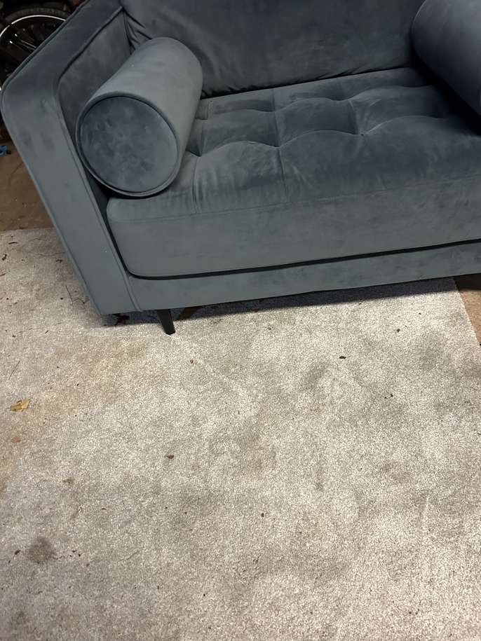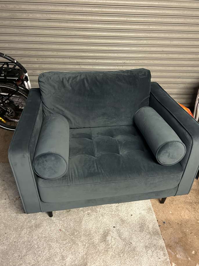 Dark blue/grey cuddle chair some wear but overall clean condition. Needs van for collection!