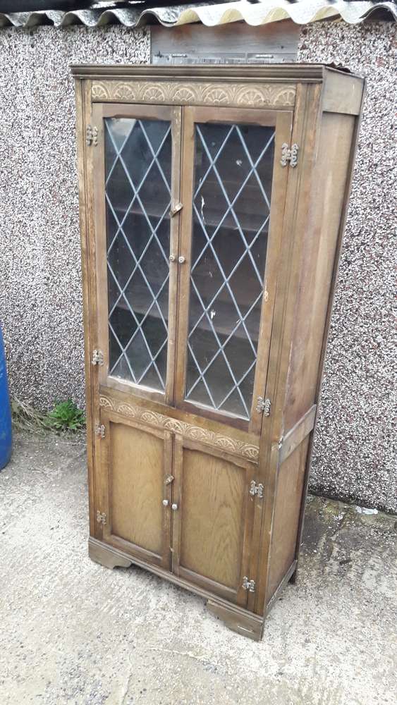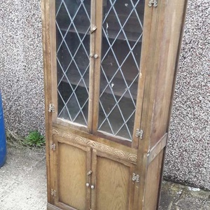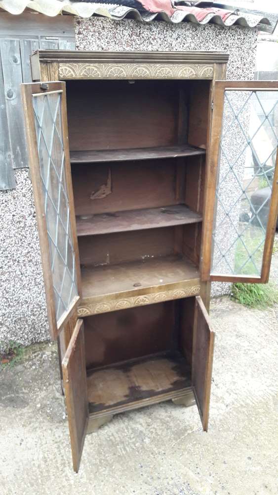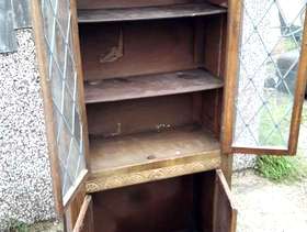 1 brown cupboard, quite old and warn, but still good for storing stuff, may for a garage or shed, or even upcycling or shabby-sheek? Come and get her