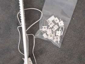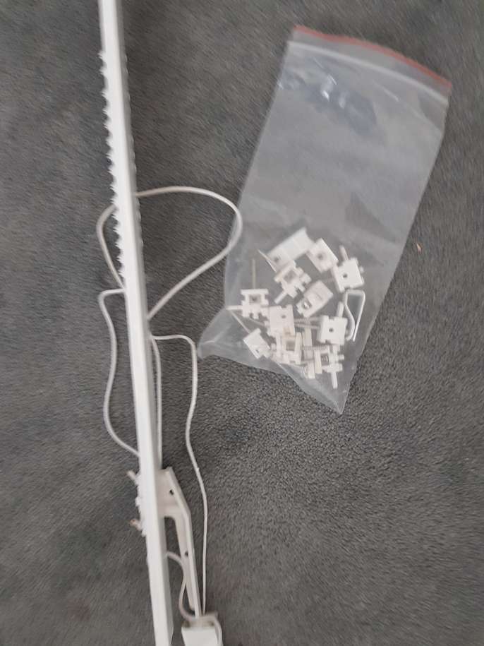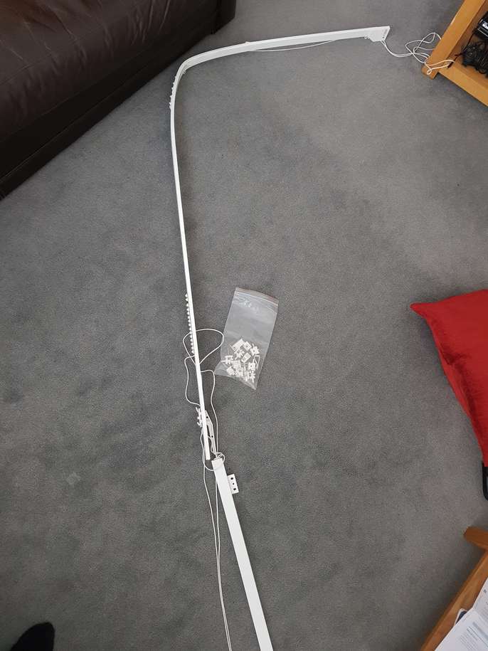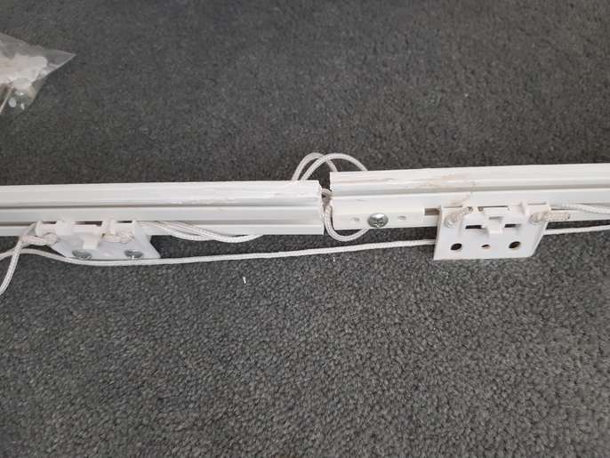 Curtain tracks - Easy to bend. They were bent to cover a 2.5m window + 80cms side, but can be bent in any other way. 2 sections have been separate for easy of carrying but there is connector to put them together again if needed. Accessories ans screws included.