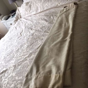 Chenille cream curtains 2 pairs ring eyelets 160cms wide 135cms deep used reasonable condition Cream Jacquard king size duvet cover with 4 pillowcases and fitted sheet also used clean and in reasonable condition