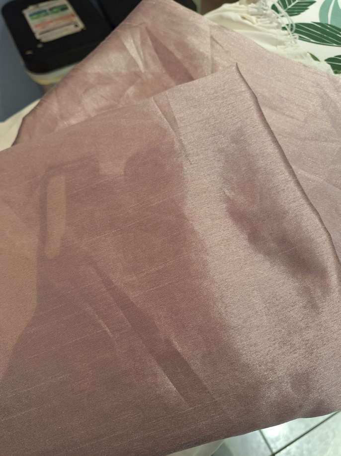 Pair of Dunelm curtains. Polyester. Pale pink material has a sheen. Each curtains is approx 46" wide and 51" drop (117cm x 130cm). Have been washed but will need a quick iron before hanging. One curtain has a small stain - see pic, but not that visible when up. Ready fir collection.
