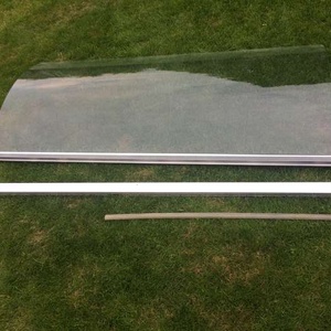 Glass shower screen for fitting above curved bath edge. Complete with mounting strip, never been fitted or used, 58ins. high x 25 ins wide