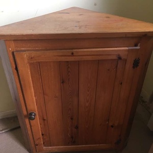 Solid pine corner cabinet. Matching mini sideboard available too. Has shelf inside.