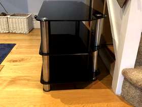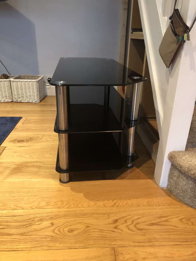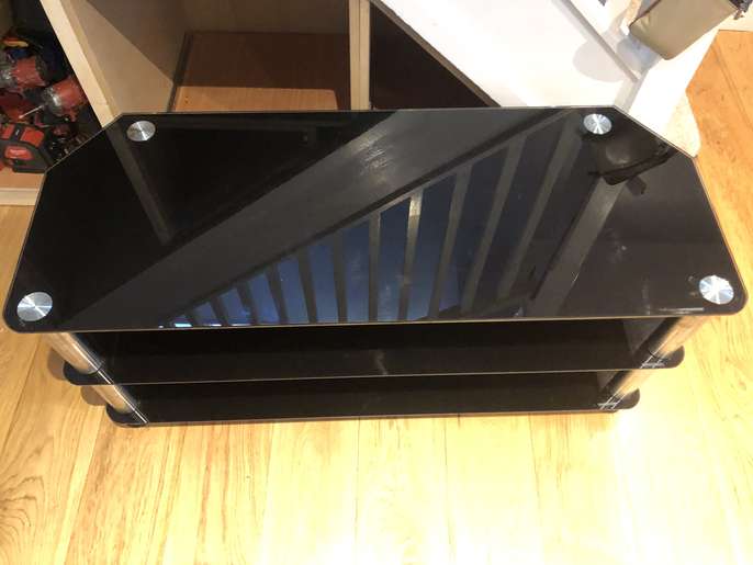 Dark glass tv stand This item is in Stanstead Abbots GB All the details Black Glass tv stand 3 shelves Category Furniture Request This Item Ask a Question Post Message