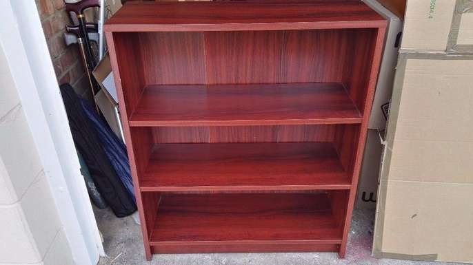 2 matching dark Oak - Wooden Bookcase with 3 shelves in good condition. You are welcome to one, or both Available for collection from near Thorpe Park, Staines/Thorpe
