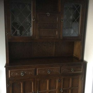 Large wall unit/sideboard in dark oak. Top can be removed for easier transport. Size 52” (132cm) wide 15 1/2” (39cm) deep 72” (183cm) high