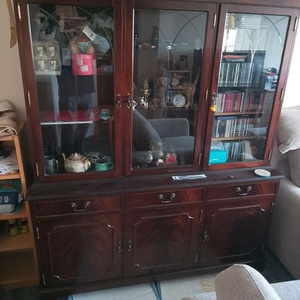 Dark wood wall unit 5ft long and 6ft high ,cabinet rests on top im changing to light wood furniture this a nice piece ,can let just bottom go as it would be a nice sideboard ,it is heavy would nedd 2 people to remove and a van.if not gone soon im gonna break up and take to the tip which seems a shame
