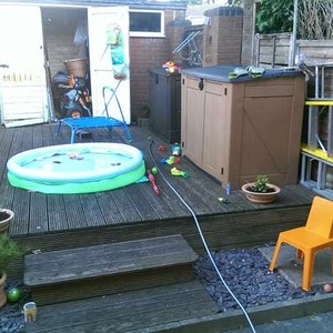 Timber decking. Used, in good condition . Needs dismantling. Please contact Jan for more details .