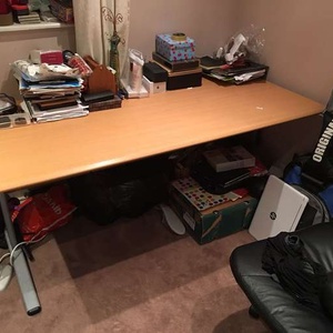 Solid desk available. Must bring tools to dismantle and take away. They will need to be carried downstairs from the 1st floor.