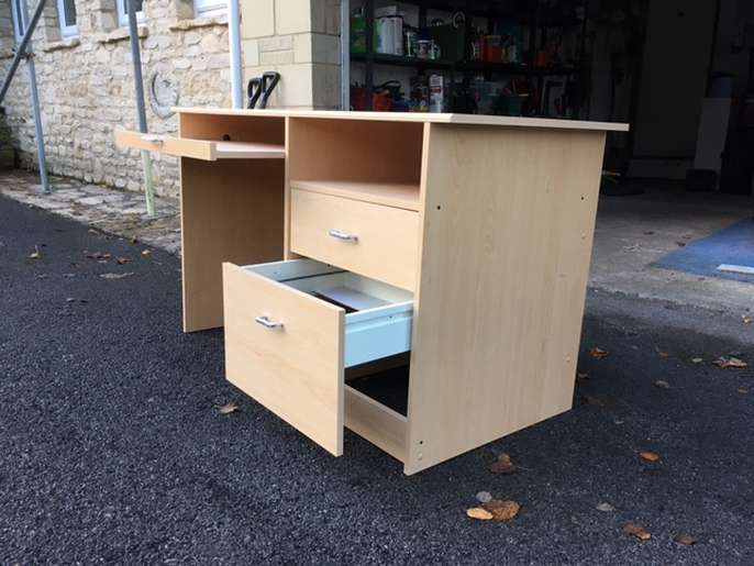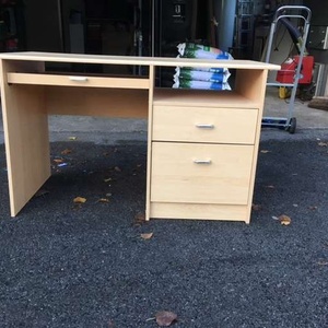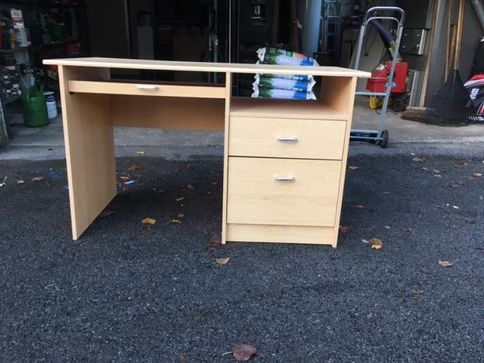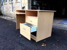 Desk 120cmW x 60cmD x 73cmH in good condition. Can be used as a computer desk, with a tray for the keyboard. It also has a drawer and a filing drawer.
