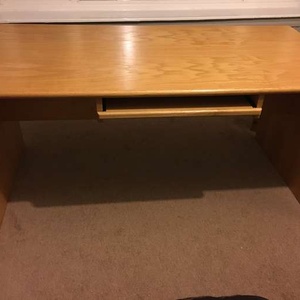 Very Large wooden desk in very good condition measuring 153cm wide by 75cm deep. It has a computer keyboard pull out shelf underneath