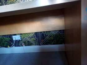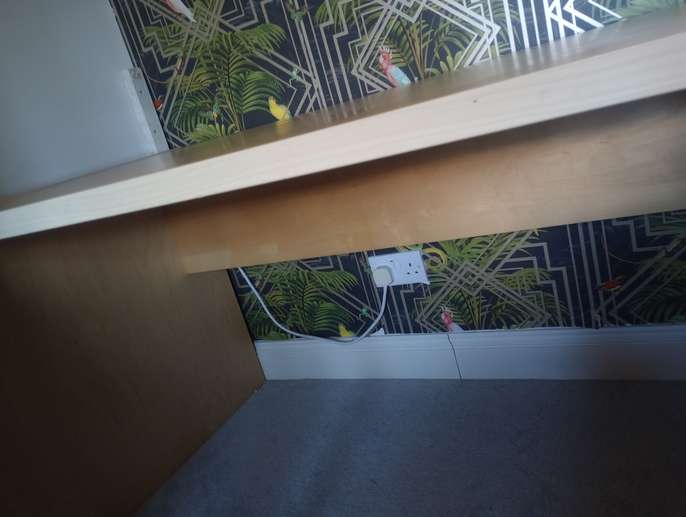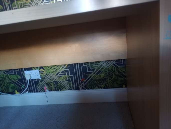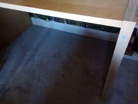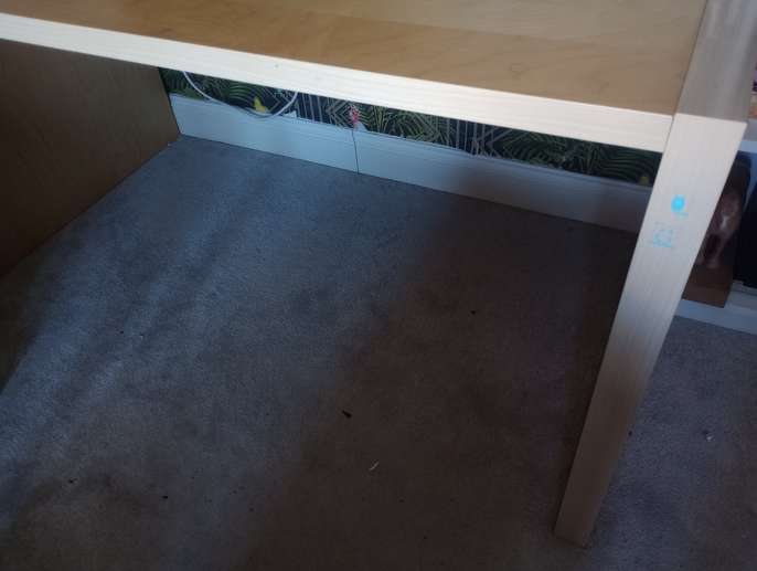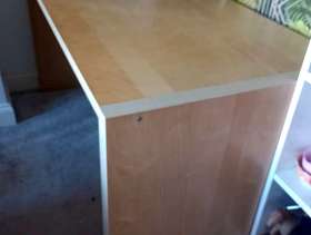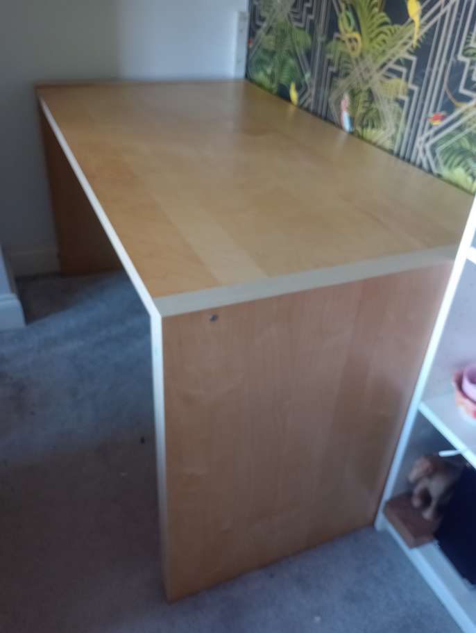 Wooden desk. Used and slightly marked but solid. Has been disassembled and is in four pieces. Width 80cm Height 76cm Length 150.5cm