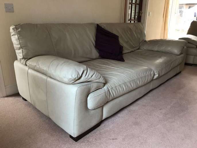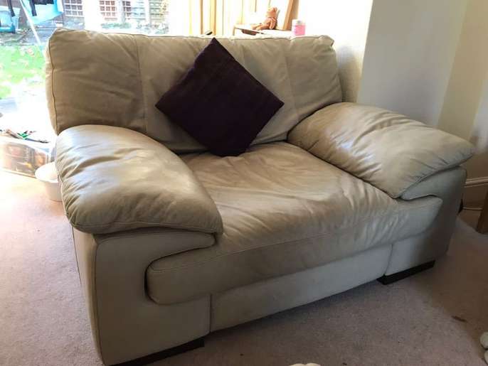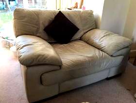 Must go as moving!! DFS Sofa - VASARI (4503) Purchased 3 years ago for £1295. Child & Pet free household, so not had lots of use. 4 Seater Sofa W 243cm x D 104cm. 1 Large matching chair. W 132cm x D 104cm. It is made from an untreated leather, which gives it a very soft feel. Collection from Welwyn Garden City, due to the size will need to go out the back door, please make sure you have at least two people to collect this as there will be no one to help remove it, it is a solid build so is a heavy weight.