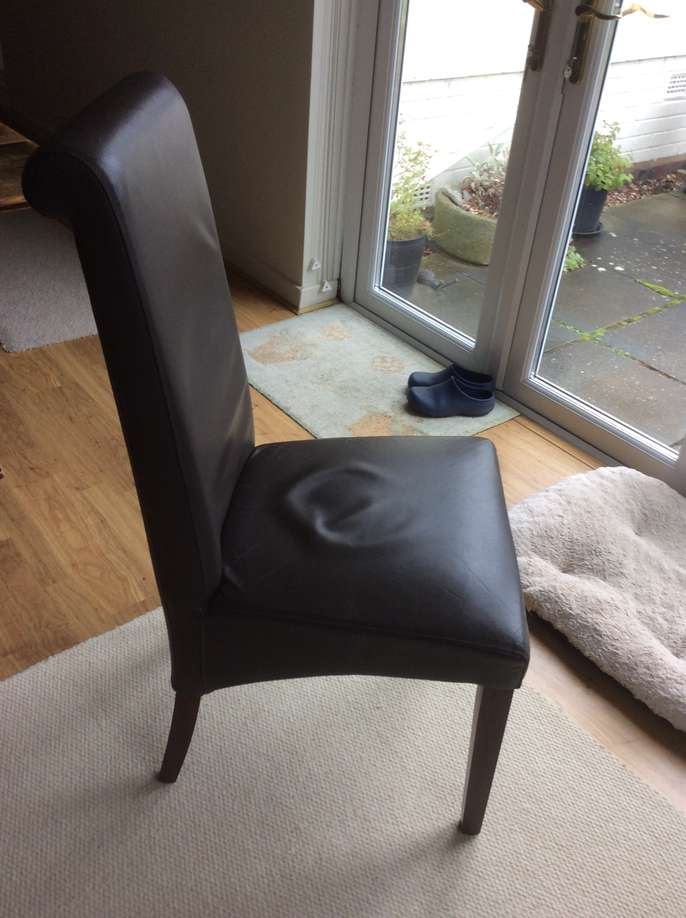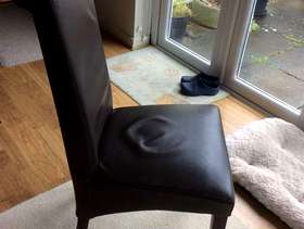 Set of 4 dark brown high back leather dining chairs (good condition) and 2 black bar stools ( a little worn at base). Will need to collect. Henley In Arden area.