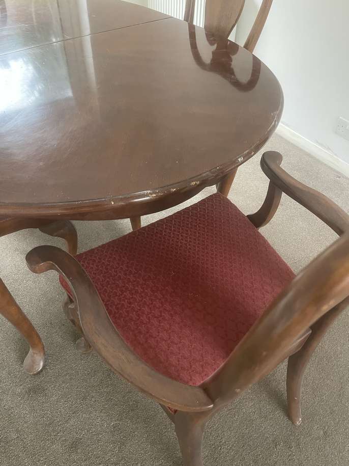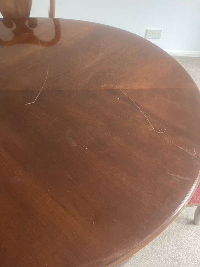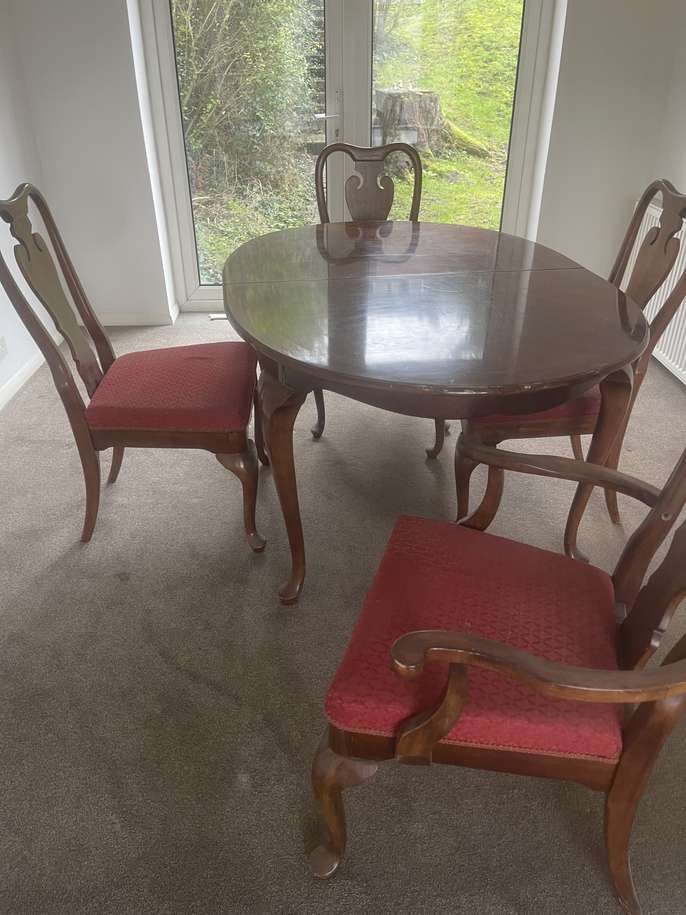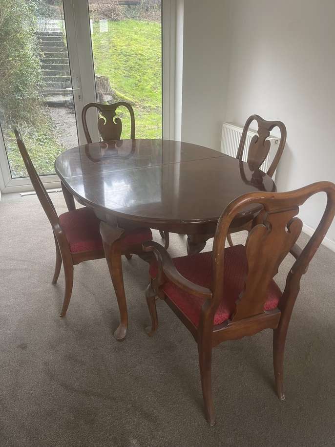 Dining table and four chairs available in High Wycombe. A couple of scratches on the table top as per photo.