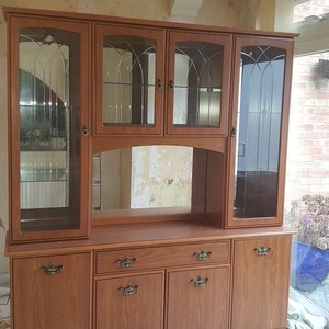 Display cabinet excellent condition. Teak finish. Comes in 2 pieces. lights in glass cabinets.