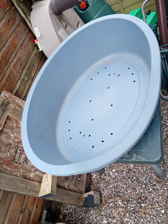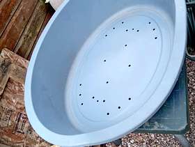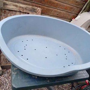 Plastic large dog bed (made from recycled plastic), good condition, its a bit too large for our dog. Size is 95cm wide, 70cm deep and 24cm high