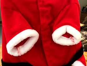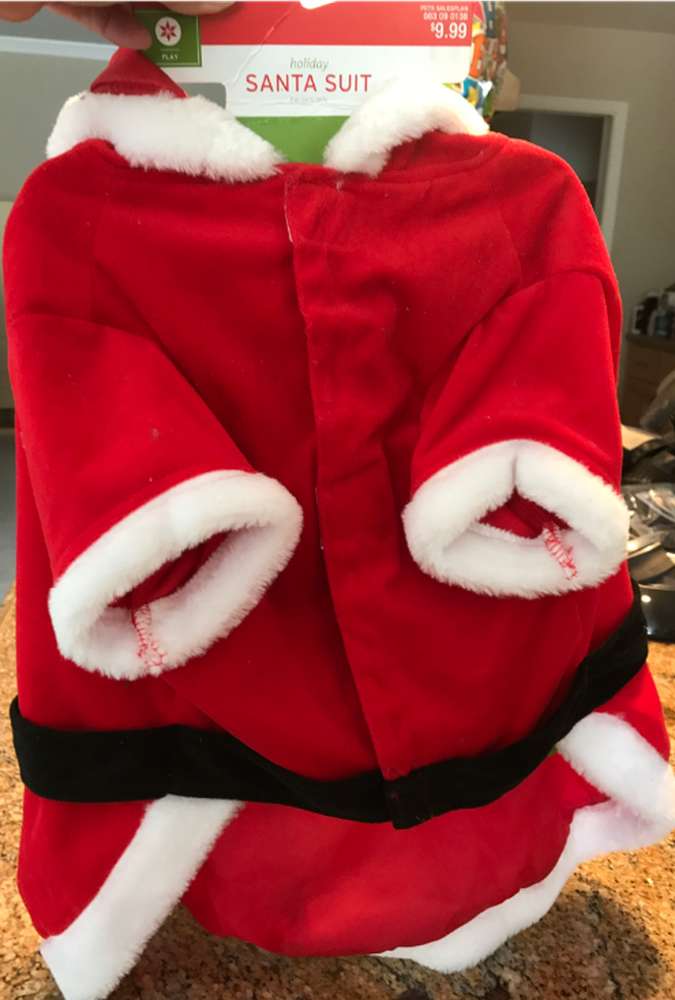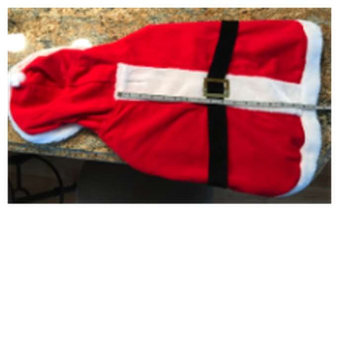 I bought a Santa Suit for my 23lb Frenchie and it was one size too big. In the front from the neck down it is 13" and in the back from the neck down it is 18" and it is about 29" around, with a Velcro closure in front. It would be great for a medium sized dog about 30-35lbs would be my guess.