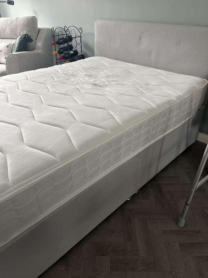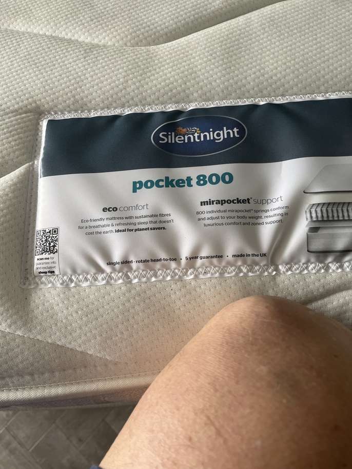 Double bed, brand new mattress and base This item is in Birchwood GB All the details Silent night pocket 800 silver feet, grey head board, collection only Category Furniture Request This Item Ask a Question Post Message