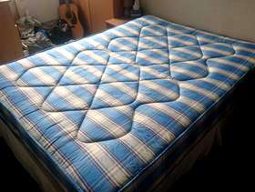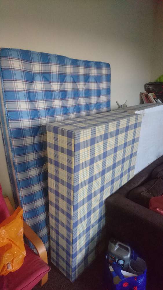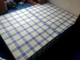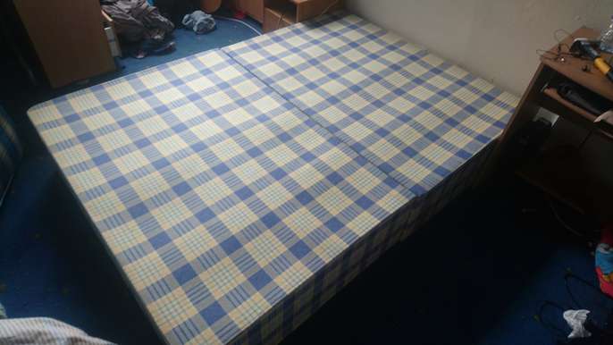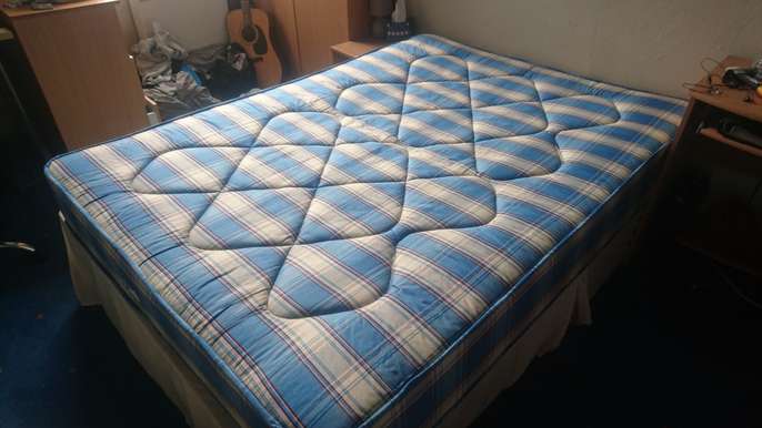 Double Bed. Mattress is around 18 months old. Divan has obvious marks (mostly coffee stains) and is a bit creaky. Would suffice as a spare room bed. Collection necessary.