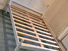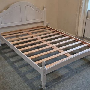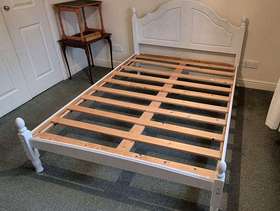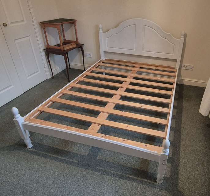 Painted pine slatted double bed frame without mattress. Standard double for 4'6" wide mattress.