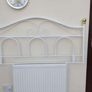 Bed head for double bed in excellent condition White metal bed head with gold trim including fixtures Free to first person to collect