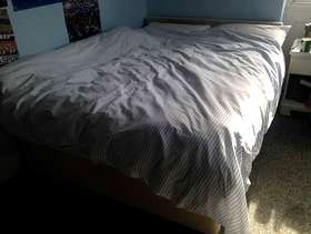 Double bed with 4 x drawers for storage + mattress + headboard. All in excellent condition. Was previously used as a spare bed and now converting bedroom for my son so replacing with a single.