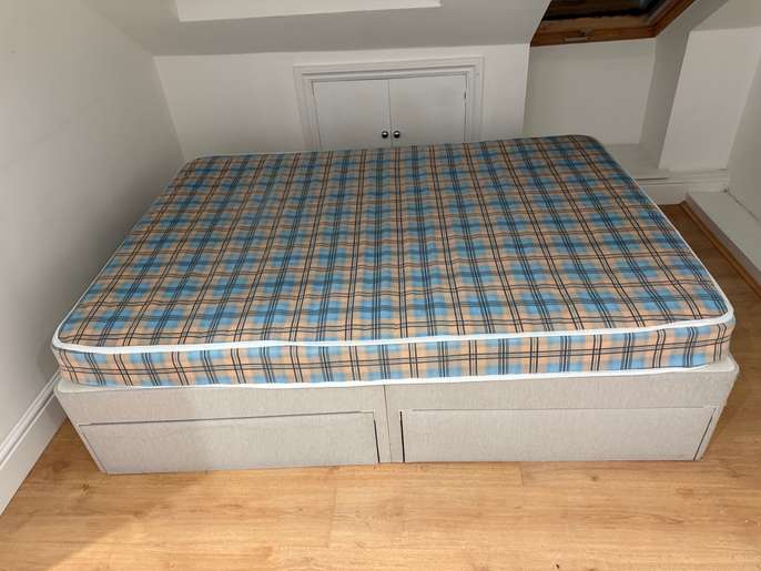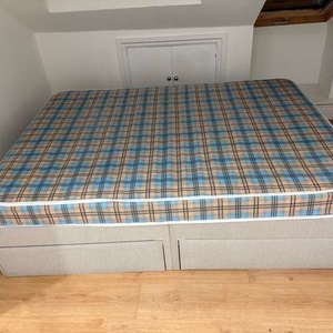 Flat clearance, must be collected by 19th April at the very latest, due to flat sale. No stains on mattress, it has always had a protector sheet on it. Collection from Chiswick W4 3LT
