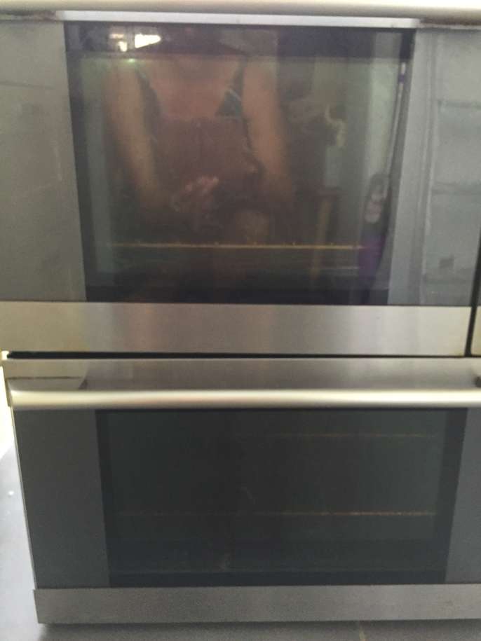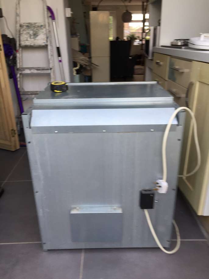 Double electric oven in good working order but needing a clean. Must be collected. Dimensions 59 cm Wide 71 cm height 56 cm deep