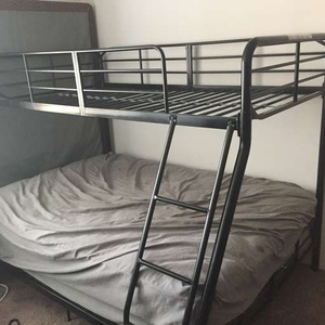 Looking to give away a metal frame bunk bed. MATTRESSES NOT INCLUDED. Double on the bottom. Twin on the top. Less than a year old. You must pick up if interested. Serious replies only. Looking to get rid of ASAP.
