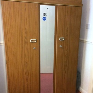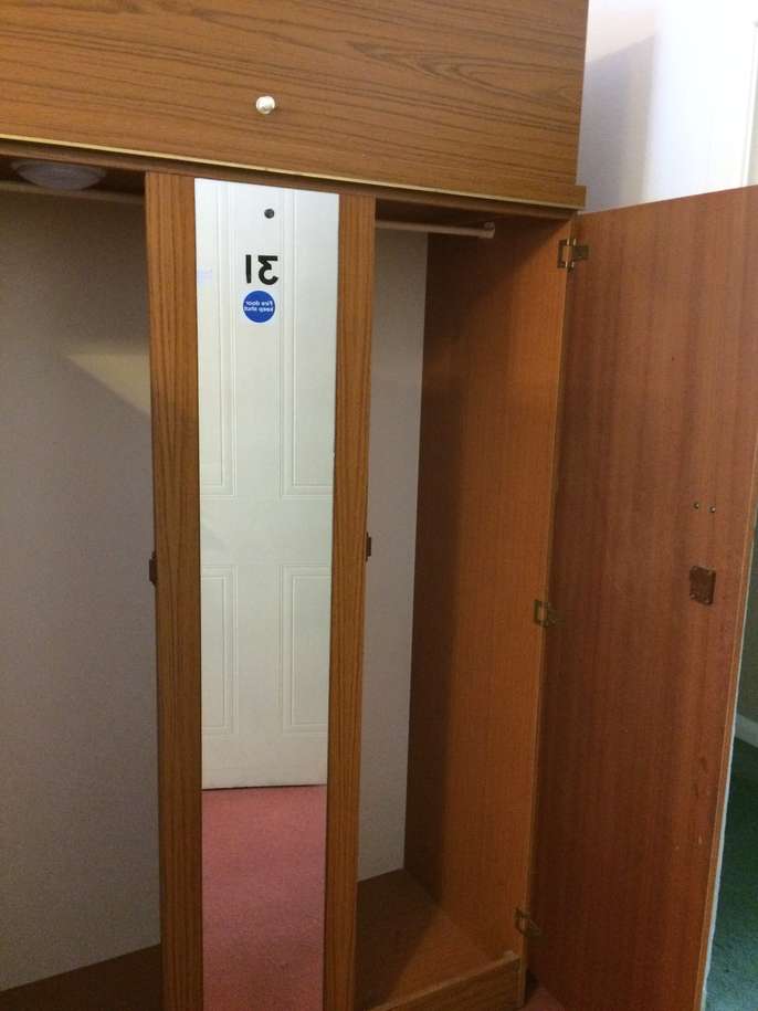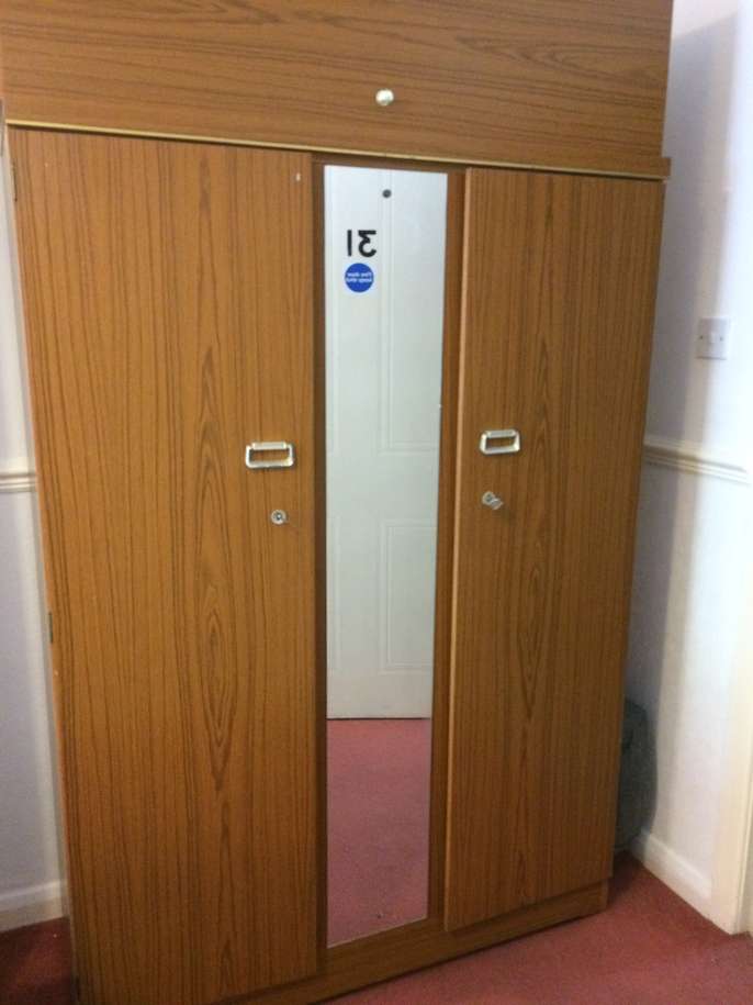 A double wardrobe with central mirror and removable box on top. Used but in good condition. Collection only.