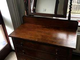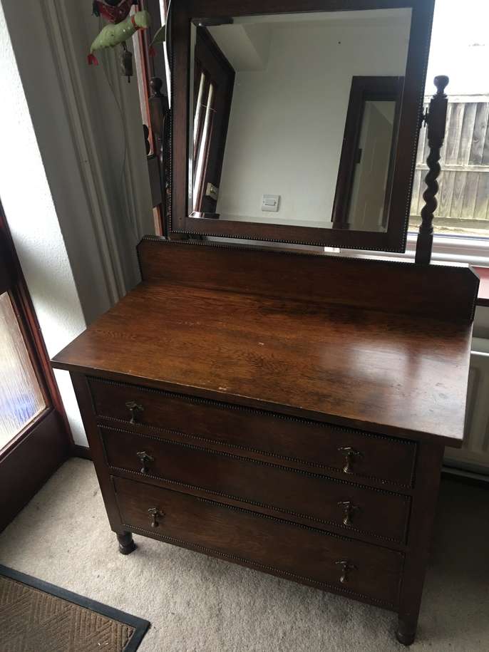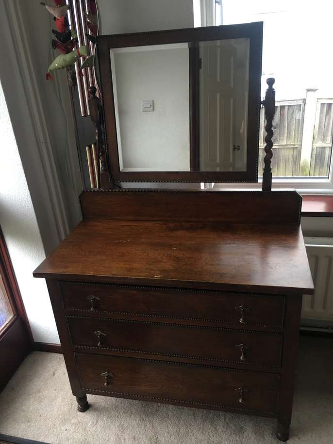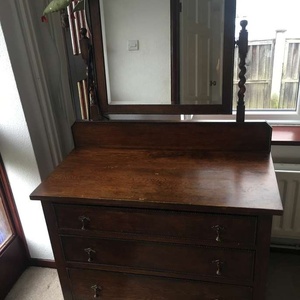 Wooden cabinet with mirror. Has some nice detail will need some restoring 90 (width) cm , 45cm (depth), 70cm (height) plus 70cm (with the mirror)