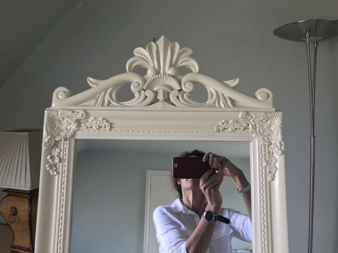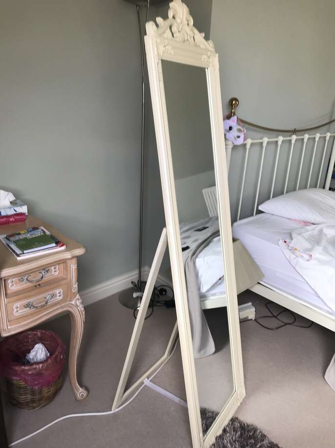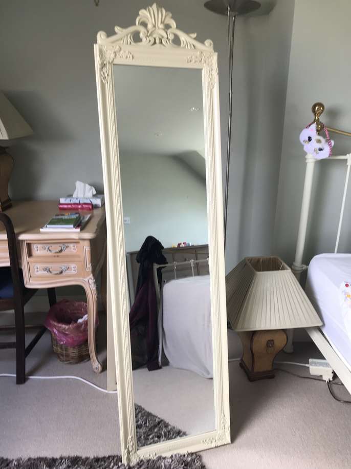 Pretty cream coloured full length dress mirror. 44cm wide x 170 cm high at tallest point Collection in Person from RG9 3BY needs to be collected by 9th August