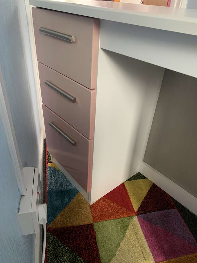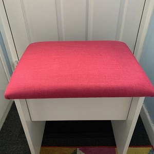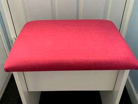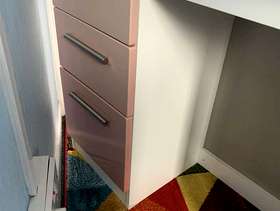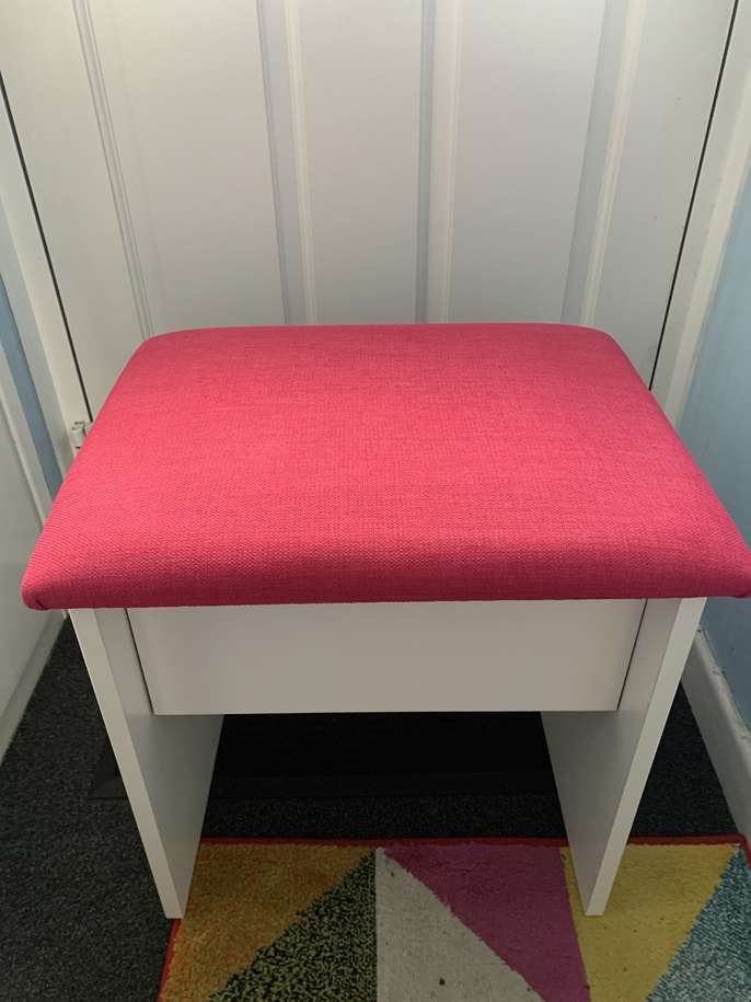 3 draw unit with pink fronted draws (faded) and lovely pink stool (hardly used ) well made quality .