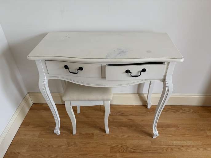 Free dressing table available for collection from Finchley (N3 2AX). For anyone that’s handy with DIY this dressing table needs a bit of TLC so if your handy with a paint brush and tightening screws this is the perfect little addition for any bedroom or guest room.