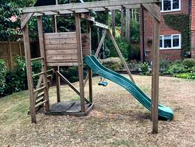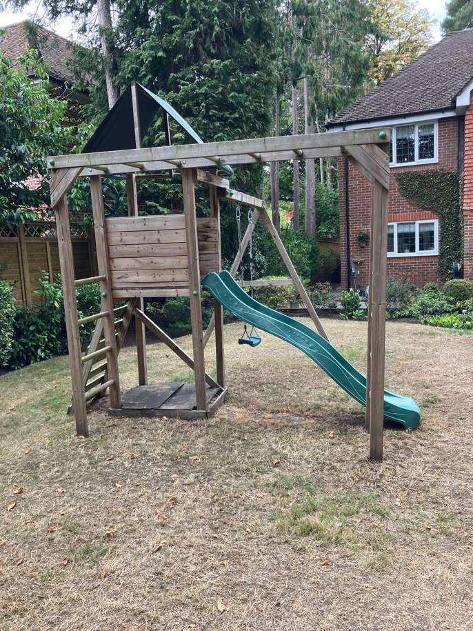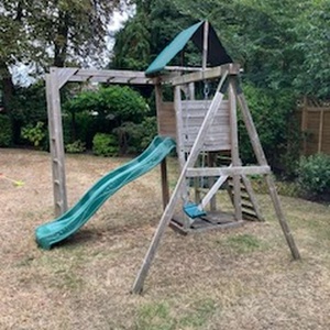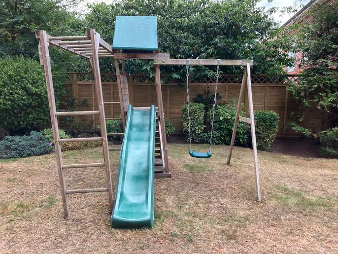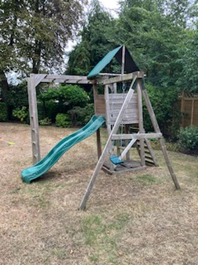 Outdoor play equipment with slide, swing, sandpit and monkey bars. Free but will require you to disassemble and transport away.