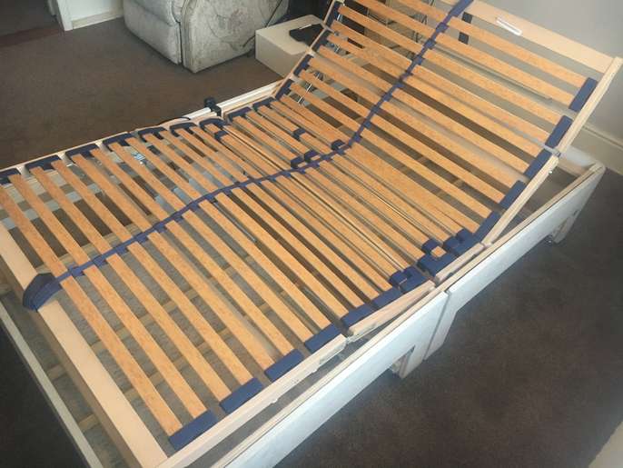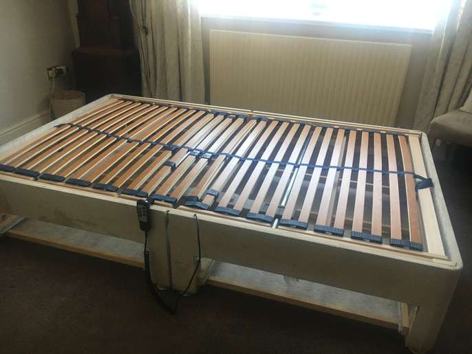 A queen size electric foot and head divan bed and mattress with 4 drawer storage. In full working order, 4 years old. Comes apart but will need a large car or van to transport Approx 190cmx125cm. Divan base needs a bit of a clean!