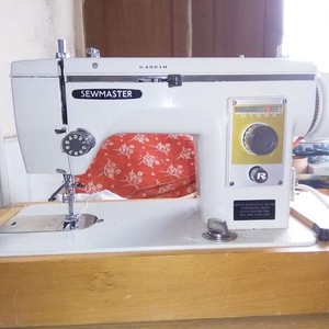 On offer is a Sewmaster electric sewing machine. Its tensioning is very iffy, and overall it might really benefit from a general servicing. Other than that, it works and comes complete with carry case.