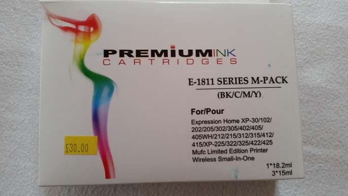 Premium Ink Cartridges E-1811 series M-Pack 2 x yellow, 2 x Magenta, 2 x Black, 1 Cyan Blue. I bought the cartridges and the laser on the printer broke so I bought a new printer which is not compatible with them.