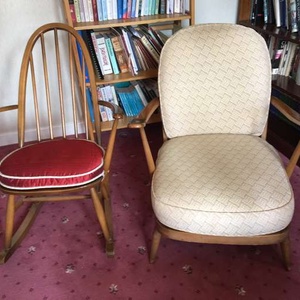 Ercol upholstered armchair plus small matching rocking chair. £20 both. Good condition.