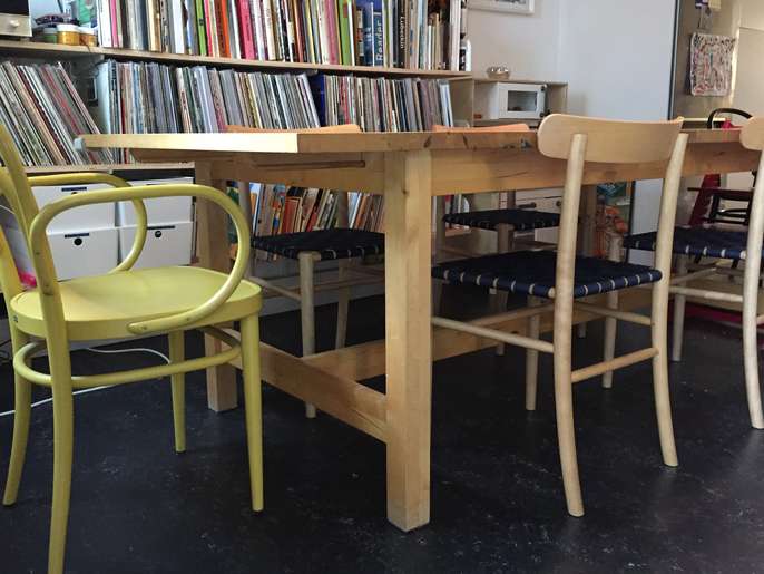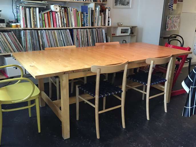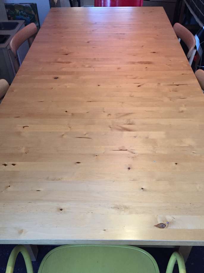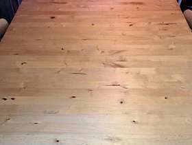 Ikea Norden extendable table in birch. Sits 8/10 people comfortably. Dimensions: 220/266 x 100cm In good used condition. Has been used as our main table for 5 years, so shows the expectable wear and tear.
