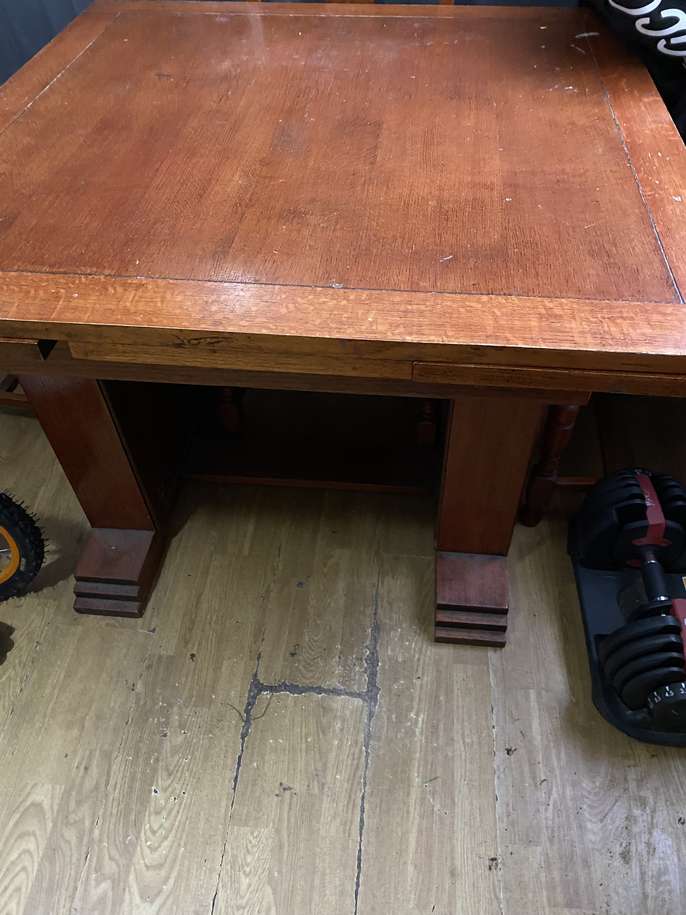 On offer is this table and chairs-perfect for upcycling. It has a middle section which can be used to extend to fit 6 people. Collection from High Town, Luton. Will need 2 people and suitable vehicle