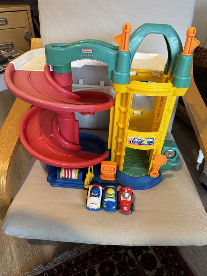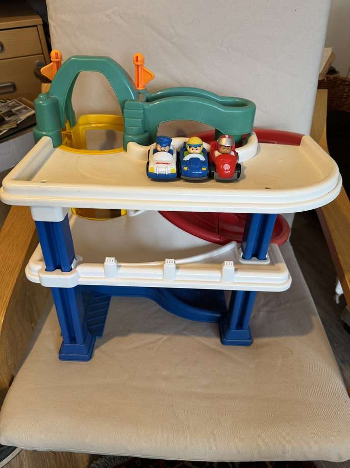 Much loved by toddler grandchildren, cleaned up and ready for next family. Fisher Price Little People garage with lift and ramps. Plus 3 matched cars. Must go to a good home pleaseā¦