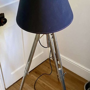 Metal framed floor standing lamp with black shade standing 118cm tall
