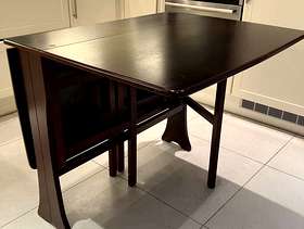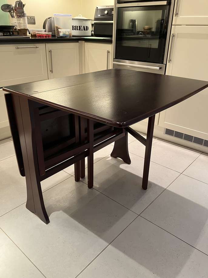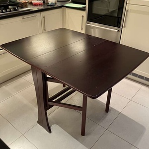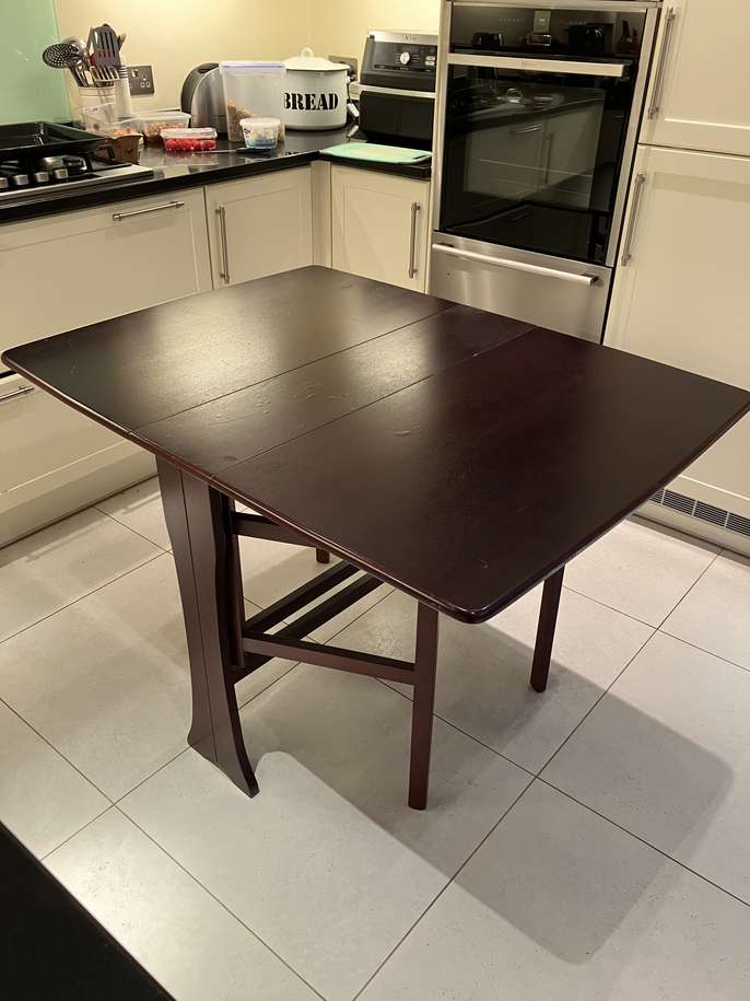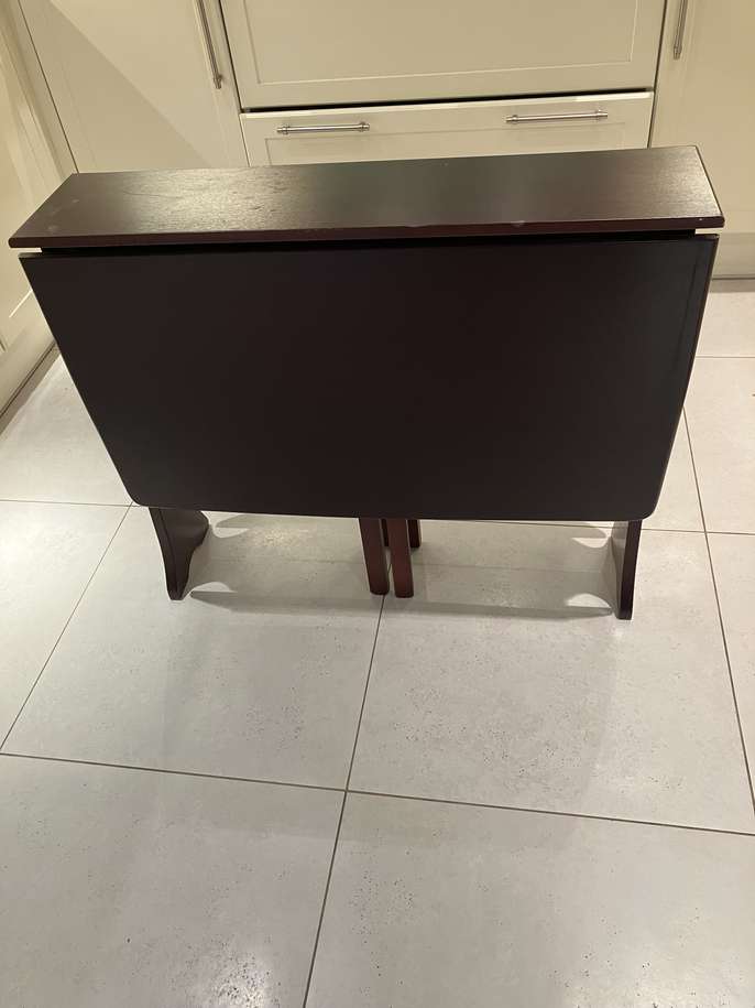 Wooden foldable dining table. Extendable separately in two sections. 90 cm (w) x 75 cm (h) x 120 cm (fully extended).