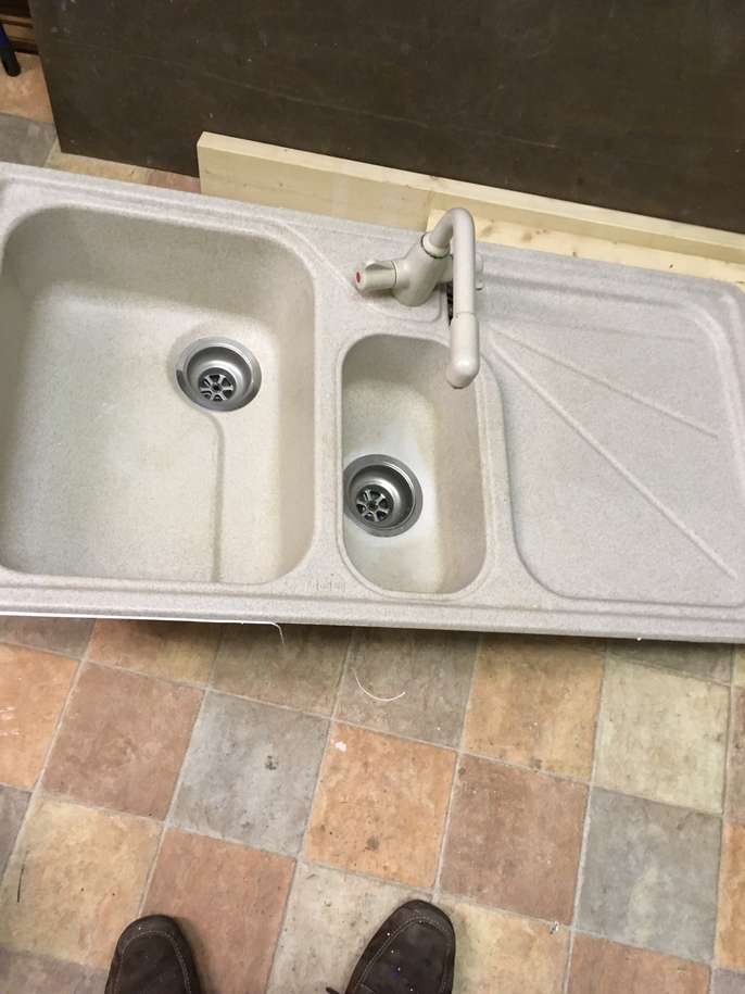 One and a half bowl beige speckled Franke sink right hand drainer Width 100cm Depth 51.5cm